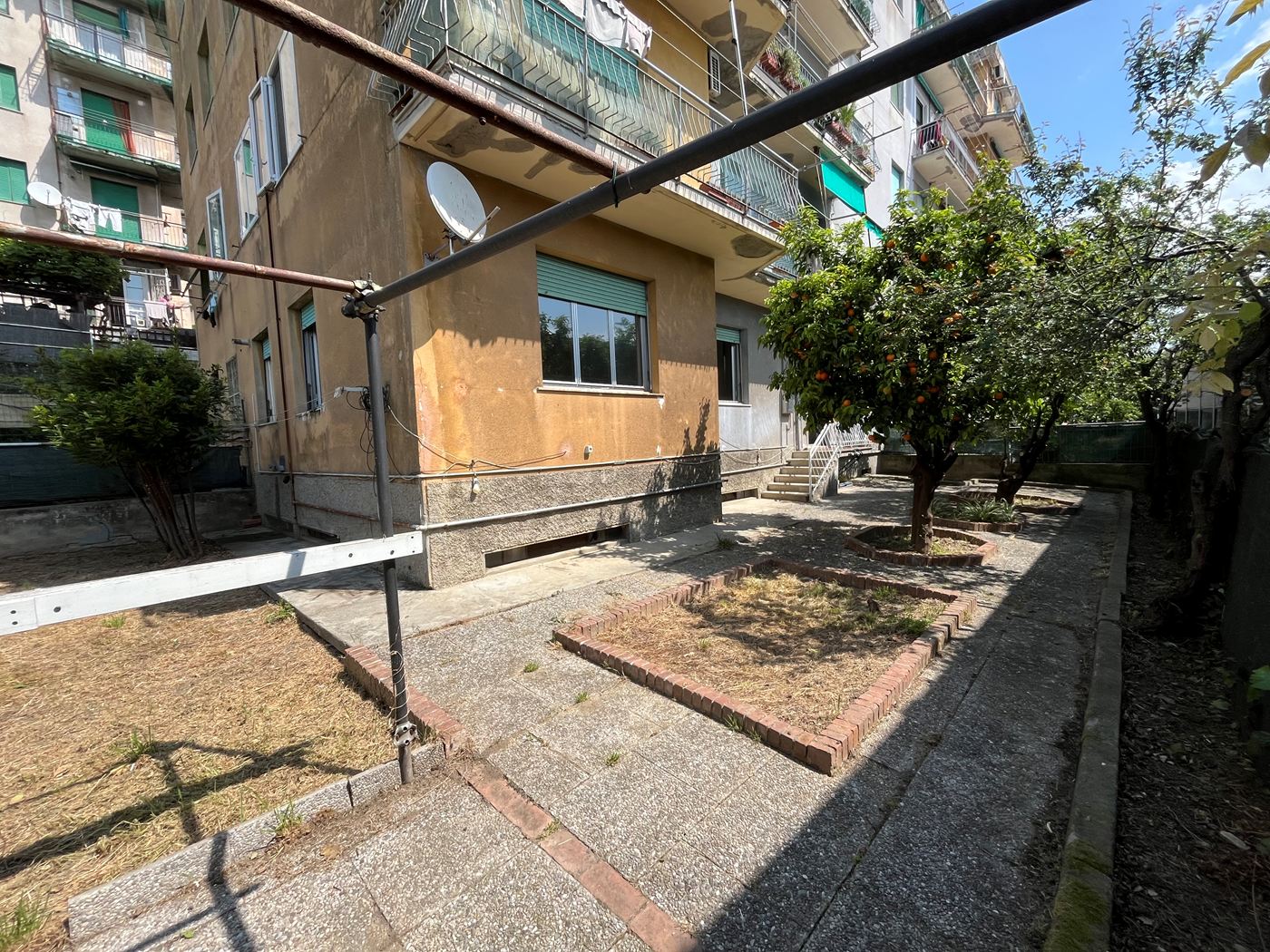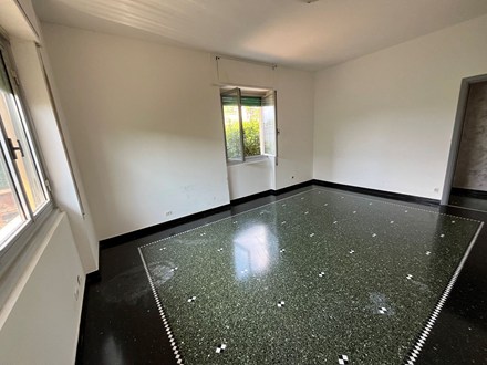 Pra’ Via Villini bassa appartamento composto da ingresso - cucina - soggiorno - due camere - bagno - ripostiglio - ampio giardino su tutta la doppia esposizione, mezzogiorno / ponente, garanzia di sole e luminosità durante tutto l’arco della giornata. Impianto di riscaldamento autonomo, molto contenute le spese di amministrazione dello stabile. Possibilità ampia e comodissima cantina. Adiacente lo stabile area adibita a parcheggi condominiali